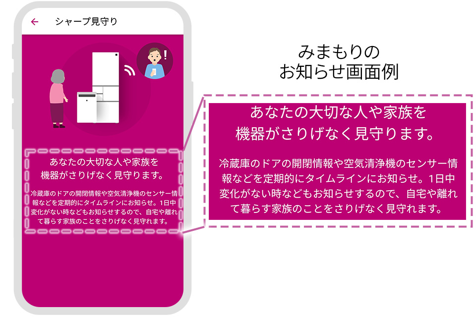 たとえば働くママの場合、帰宅した子供にメッセージを伝えたい時は、「COCORO HOME」アプリを通じて、自宅の冷蔵庫に伝言を送信すれば、ドアを開いたタイミングで伝言が再生されます。開閉状況がわかるので、子供の帰宅確認もできて安心です。