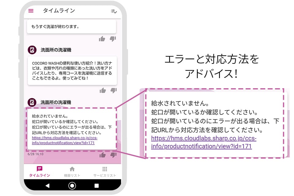 06運転終了やエラー、お手入れの時期をスマホにお知らせ