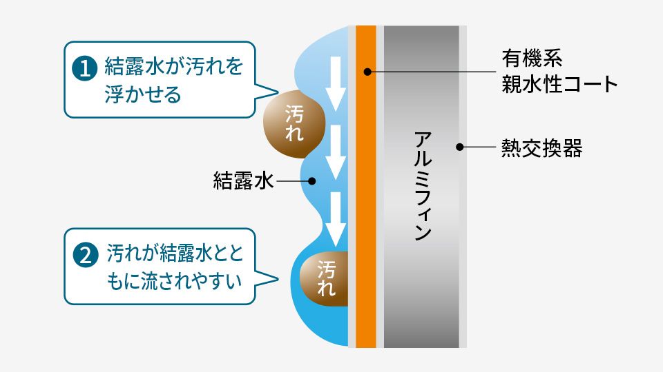 熱交換器についた汚れが洗い流されやすいので、エアコン内部が清潔。