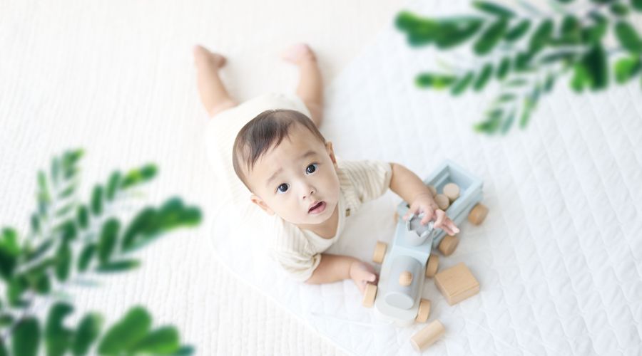 1枚目:赤ちゃんが快適な部屋で過ごしているイメージ、2枚目:高さ249mmコンパクト室内機