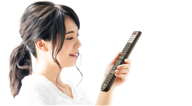 リモコンの上段に7つの動画サービスのダイレクトボタンを搭載。テレビの電源がオフの状態でも、ダイレクトボタンを押すだけで、人気の動画サービスをすぐに起動できます。