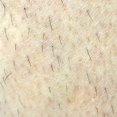 ※1、※2 ◆試験方法:週2回のお手入れを4週間継続し、お手入れ1週間後の肌の状態を比較。 ◆測定部位:脚 ◆使用モード:Strong Hair モード ◆被験者:20~50代男性12名 ◆試験結果:※1 2週間使用後、初期と比較してムダ毛が目立ちにくくなったと実感。(当社調べ)