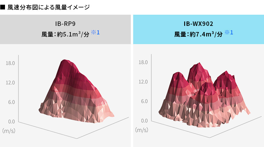 スピーディな風が周辺の空気を巻き込みより多くの風を髪に届けます。