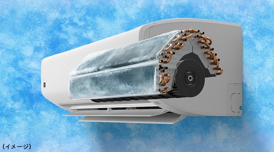 熱交換器の温度を氷点下まで下げることで、従来除湿しにくかった室温が低い時でもパワフルに、快適な除湿を実現します。また、ファンの回転数を極限まで落とし、肌寒さも抑えます。