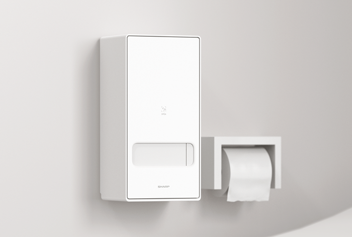 ナプキンを自動配布できるディスペンサーについて調べていたなか、シャープから「todokuto(トドクト)」が発売されたのを知りました。他メーカー品とも比較しましたが、本体前面に手をかざすだけでナプキンを1枚ずつ取り出せる使い勝手の良さを第一に評価。1枚取り出した後はあらかじめ設定した時間が経過するまで取り出しを停止し、多数の持ち去りを防げるのもポイントになりました。また壁掛けのほか、棚置きにもなるので、壁面に穴を開けなくても、洗面台の上に置いて使えるのもメリットでした。
