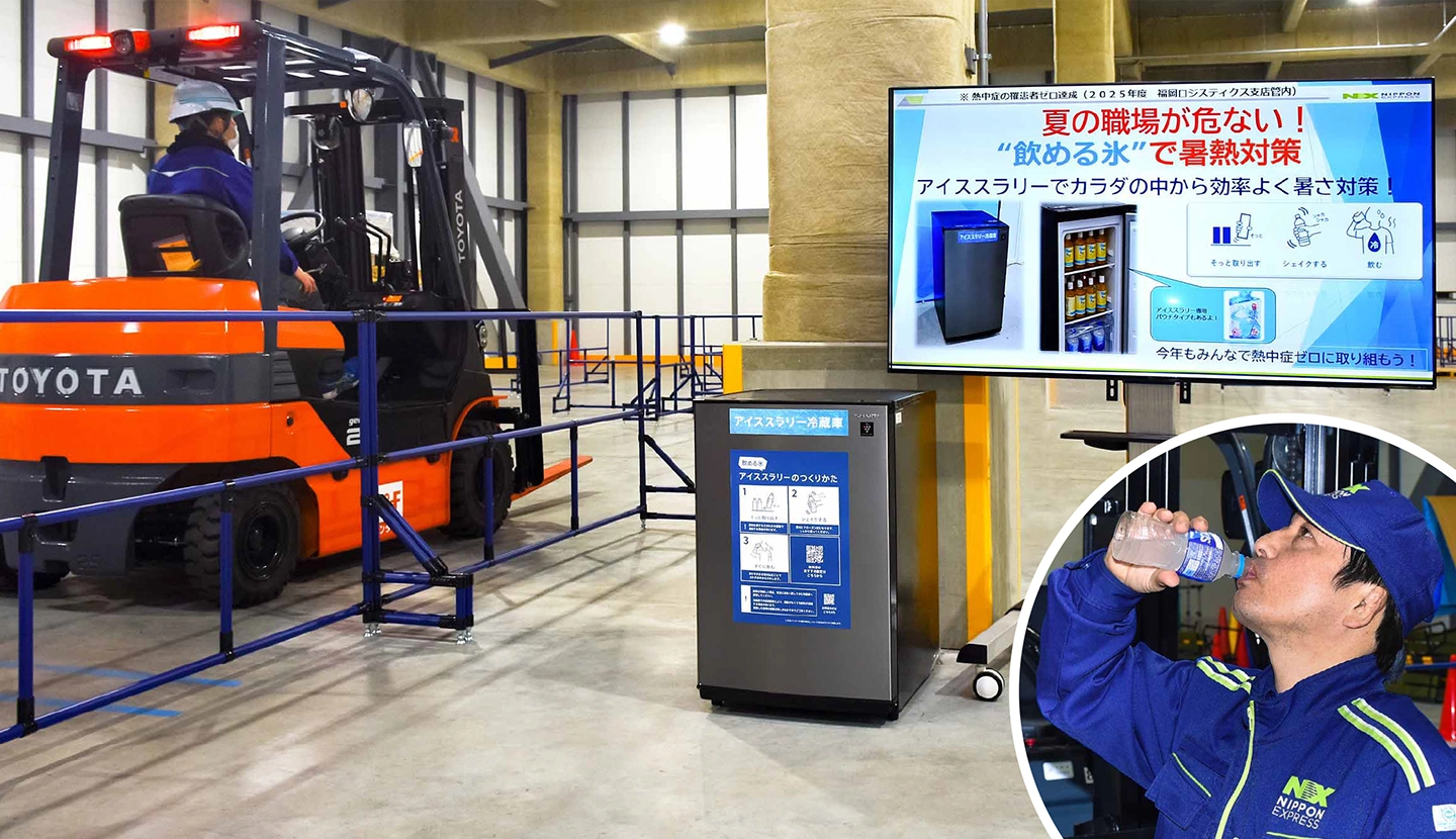 福岡ロジスティクス支店管内の17拠点に計19台をレンタルで導入しました。前夜のうちにスポーツドリンクなどを庫内に入れて準備しておき、朝アイススラリーになったものを作業に出る前に飲んで深部体温を下げるようにしました。従業員へのアンケートでは「体が長時間冷えている」「体幹のほてりがおさまった」「頭まですっきりした」と好意的な意見が多数でした。さらに現場からは「作業者の立場で本当に欲しいものを提供してくれた」と喜ぶ声も聞かれ、モチベーションアップに貢献しました。