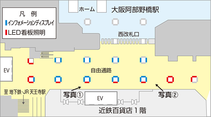 大阪阿部野橋駅1階西改札外コンコース(あべのハルカス前自由通路)概略図