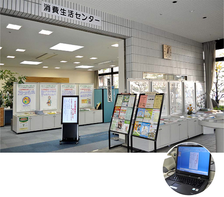 茨木市に置かれた消費生活センター。市民を対象に、商品やサービスなど消費生活全般に関する苦情や問合せなど、消費者からの相談を受付け、公正な立場で処理にあたられている。