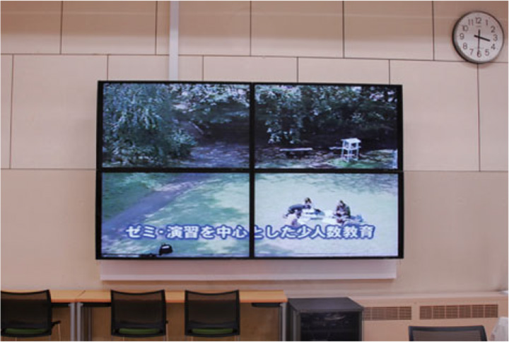 2009年8月、8号館にPN-E521を4台並列に設置。2010年3月には学生食堂にPN-E601を4台、2×2のマルチディスプレイとして導入された。