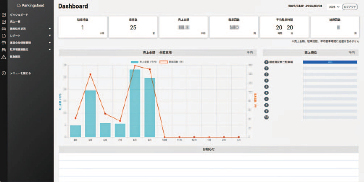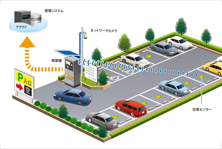 (上)PCやスマートフォンなどの端末で、いつでも駐車場の状況を確認できる