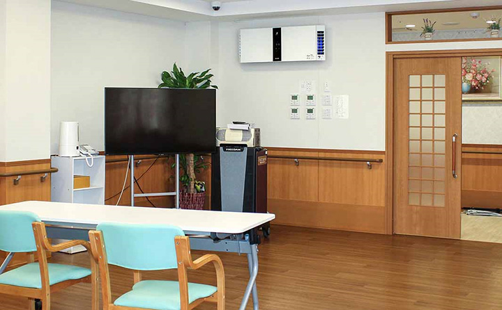 - 高い空気浄化力で清潔な共用スペースが実現。入居者や面会のご家族に楽しく団欒いただけます。