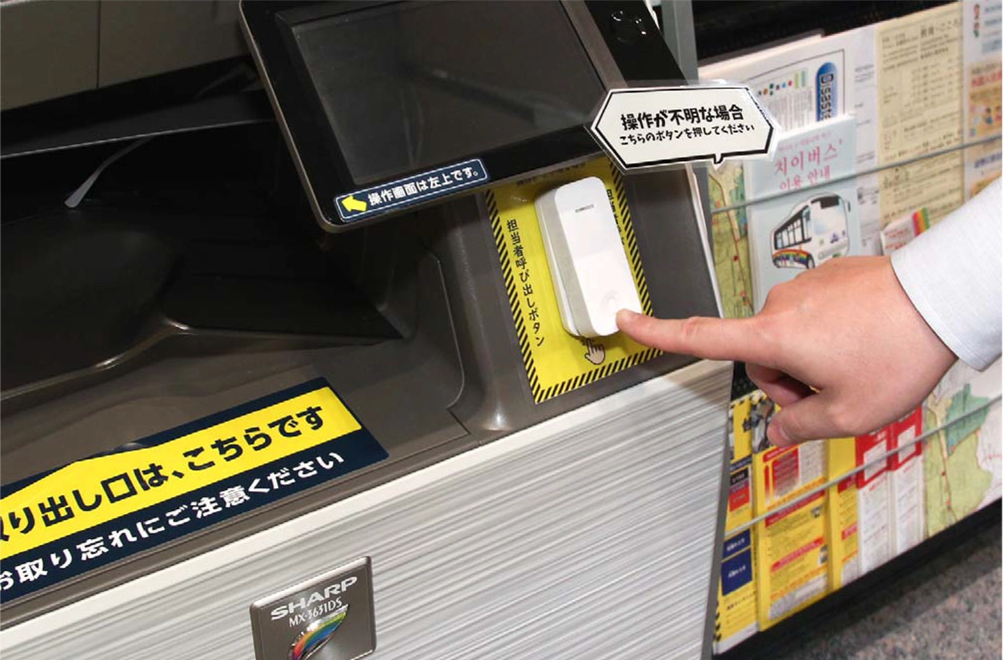 職員呼び出しボタンを区のアイデアで設置され、操作をサポート