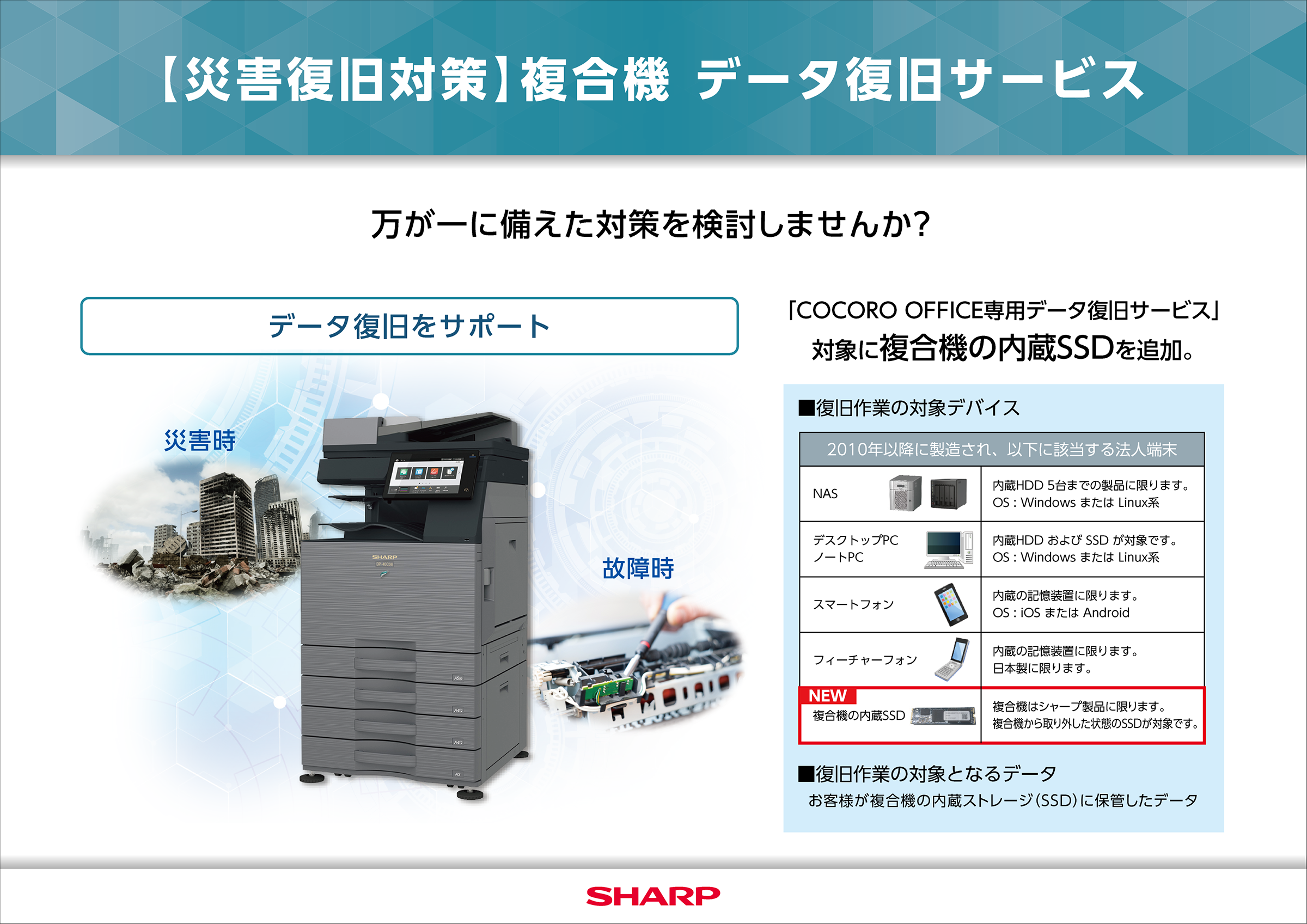 【災害復旧対策】複合機 データ復旧サービス