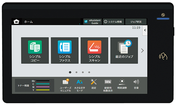 NFC(Near Field Communication)に対応したモバイルタッチエリアを操作パネルに配置。Sharpdesk Mobile®を経由した、Android™デバイスからの接続がより簡単になりました。