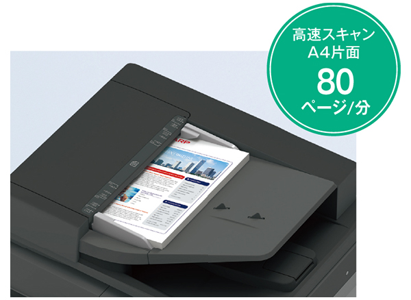 スキャンしたデータを本体のストレージに保存可能。必要な時に呼び出して印刷・送信でき、作業の効率アップが図れます。