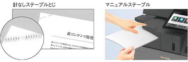 - 写真はBP-61C36。インナーフィニッシャー(BP-FN18)、3段給紙デスク(BP-DE14)、右排紙トレイユニット(BP-TR12)装着時です。