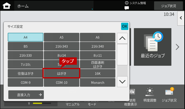 7. 「手差しトレイ」の設定画面を閉じると、ホーム画面にもどります。