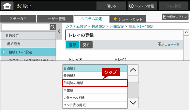 9. 給紙トレイ設定画面に戻りますので、[登録]をタップします。