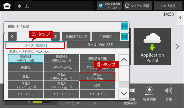 4.「タイプ」タブを選択して、[厚紙2]をタップします。