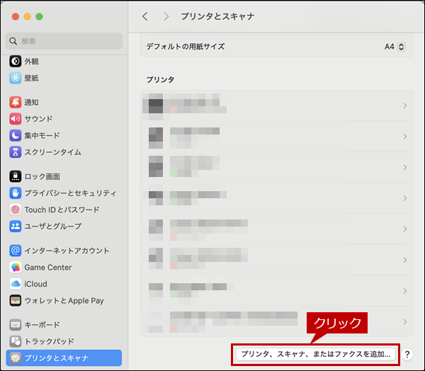 [プリンタ、スキャナ、またはファクスを追加...]をクリックします。