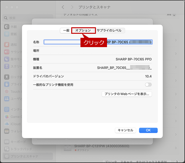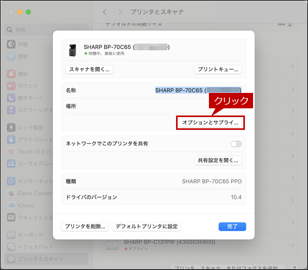 [オプションとサプライ...]ボタンをクリックします。
