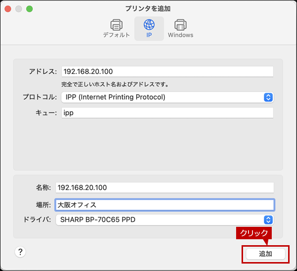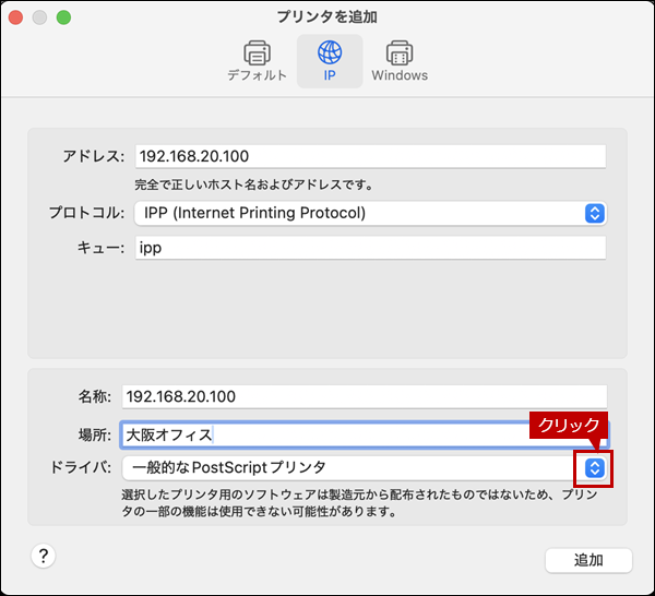 プリンタードライバーのインストール方法を知りたい。【IPPポートを使用 Mac版】(FAQ No.02292)