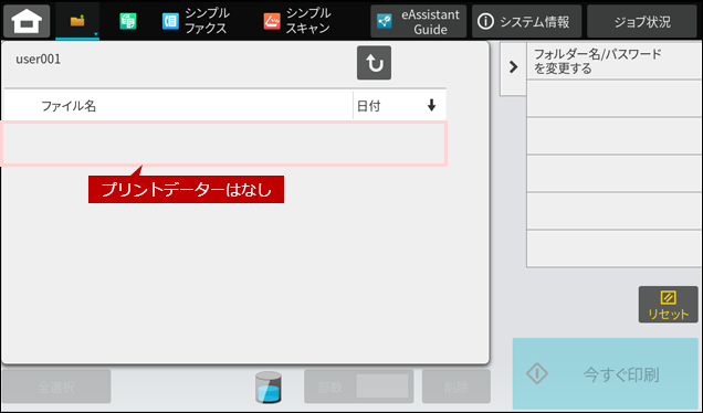 3. フォルダーにはファイル(プリントデータ)がありません。