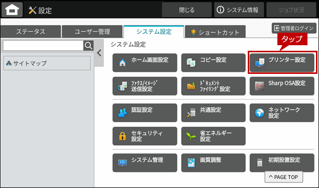 2.「設定」画面が表示されますので、[プリンター設定]をタップします。