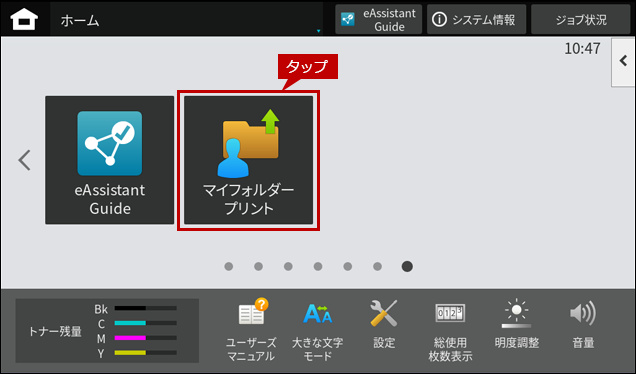 ● [マイフォルダープリント]ボタンがトップページにない場合は、ホーム画面を右にスクロールしてください。