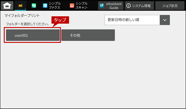 1. ホーム画面で[マイフォルダープリント]をタップします。