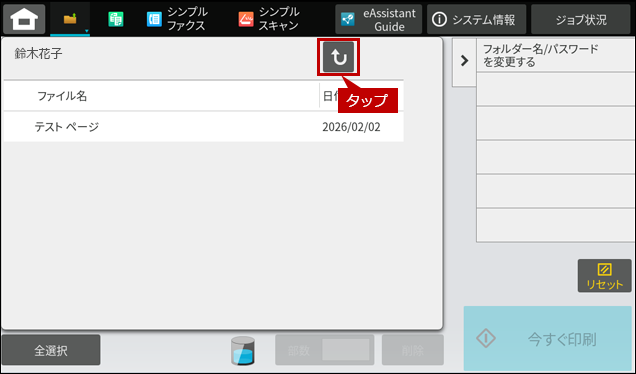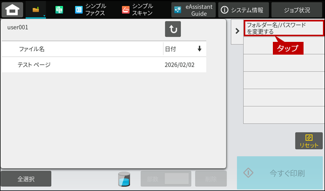 8. 「マイフォルダープリント」画面に戻りますので、フォルダー名が変更されていることを確認します。