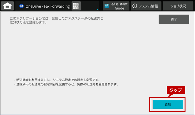 ※工場出荷値では「OneDrive - Fax Forwarding」の機能ボタンは非表示になっています。