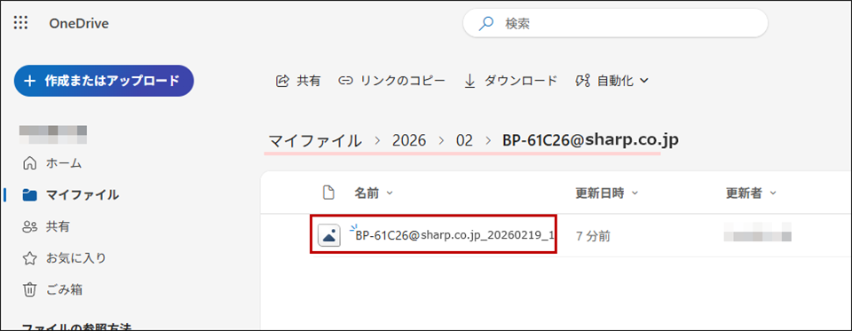保存場所は[マイファイル] > [2026] >[02]> [送信者名]となります。