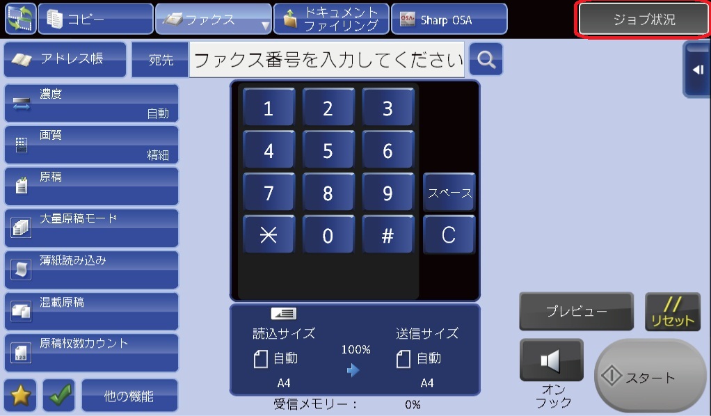 [ジョブ状況]キーをタップします。