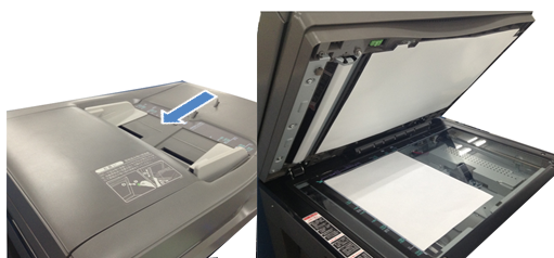 ①原稿を原稿自動送り装置の原稿セット台、または原稿台(ガラス面)にセットします。