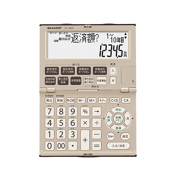 製品ラインアップ 実務電卓 製品を表示 カラー・デザイン電卓 製品を表示 関数電卓 製品を表示 金融電卓 製品を表示 プリンタ電卓 製品を表示 学校教育用電卓 製品を表示 全製品一覧 関数電卓機能比較 関数電卓選び方シート 新着おすすめ商品 NEW EL-S762K グリーン購入法適合。使いやすさを安定のボディに搭載 詳しく見る NEW EL-N742K グリーン購入法適合。手持ちでも置いても使いやすい 詳しく見る NEW EL-M722K グリーン購入法適合。片手におさまるコンパクトサイズ 詳しく見る EL-VM72 スマートなフラットフェースデザイン、快適なキーレスポンス 詳しく見る EL-501T-X シンプル&コンパクト。小さくても頼れる入門機 詳しく見る お役立ちコンテンツ シャープの電卓なら、簡単に税率設定が変更できます。 詳しく見る 世界初のIC電卓、IEEEマイルストーン受賞など、当社の電卓開発の歴史と進化をご紹介。 詳しく見る 3Dプリンターを使えば、どなたでも世界初の電子式卓上計算機・CS-10Aのミニチュアが制作いただけます。 詳しく見る もっと見る 新着情報 2025年4月24日 実務電卓 EL-S762K-x / EL-N742K-x / EL-M722K-x の製品情報を公開しました。 2024年1月25日 カラー・デザイン電卓 EL-VM72 の製品情報を公開しました。 よくある質問 Q 簿記検定で使うには、どんな電卓がいいですか? A 12桁表示、すべりにくい大型ゴム足つきや、すばやく入力できる早打ち対応などの実務電卓がおすすめです。12桁表示の実務電卓はこちらをご覧ください。※試験会場に持込可能な電卓の詳細については、必ず主催団体にご確認ください。 Q 適格請求書(インボイス)の発行にシャープの電卓が役立つと聞きましたが? A インボイスには税率ごとの消費税額を定められたルールで記載する必要がありますが、複数税率に対応した電卓なら、計算・確認がスムーズです。複数税率対応電卓はこちらをご覧ください。 Q どの関数電卓を選んだらいいのかわかりません。 A 「物理・科学」「数学」「土木・建築・測量」「経済学・社会学・統計学」などご利用される各分野で必要な機能からお選びいただけます。適応分野別搭載機能はこちらをご覧ください。