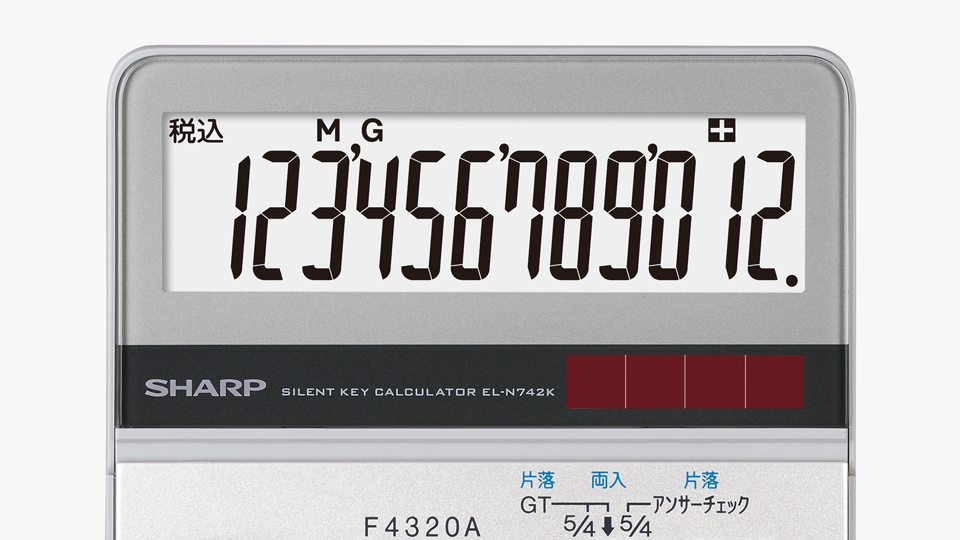 電卓の裏面には、入力時の本体のすべりを防ぐ大型ゴム足を4か所に採用しています。