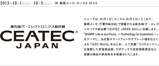 about CEATEC  JAPAN 2013 「Smart Innovation - 明日の暮らしと社会を創る技術力」close