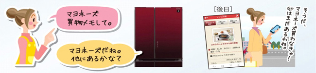 また、音声対話で「買い物メモ」が手軽に作れ、買い物中にスマートフォンで食品リストを確認できるので、買い忘れや重ね買いを解消します。