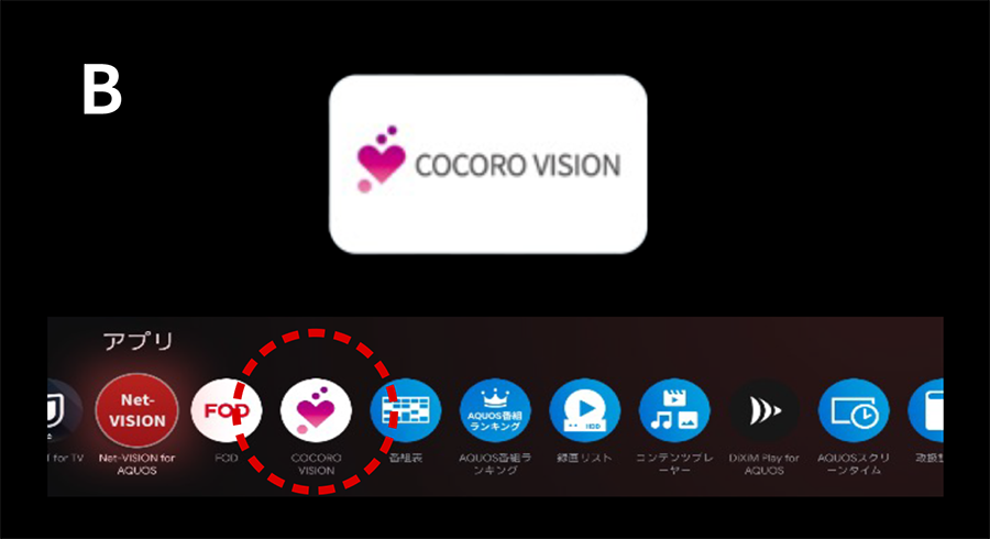 AQUOSリモコン右上にある「ココロビジョン」のボタンを押す