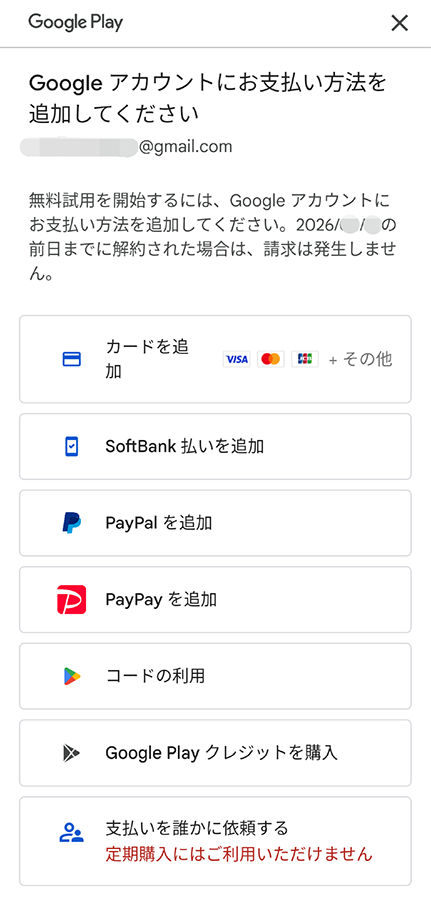 ※ 「無料トライアルは202x/xx/xxに終了します」と記載があります。