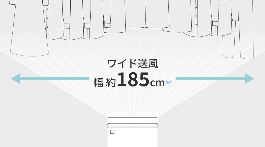 ワイド送風185cmのルーバーで、洗濯物の端まで風を届けます。