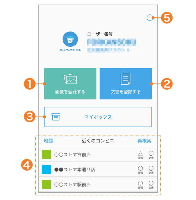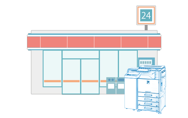 スマートフォンからネットワークプリントアプリで写真や文書を登録した後、シャープ製マルチコピー機のあるコンビニエンスストアで印刷します。