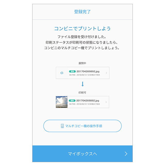 ファイルの登録受け付けが完了するとメッセージが表示されます。