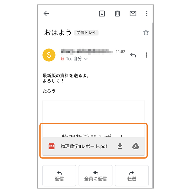 登録したいファイルが添付されているメールを表示し、添付ファイルを開きます。