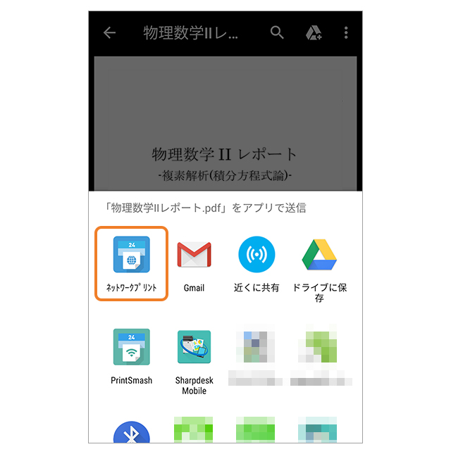 アプリの一覧が表示されますので、「ネットワークプリント」を選択します。