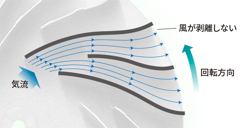 従来は気流の出口付近で剥離が発生。性能が低下する場合がありました。