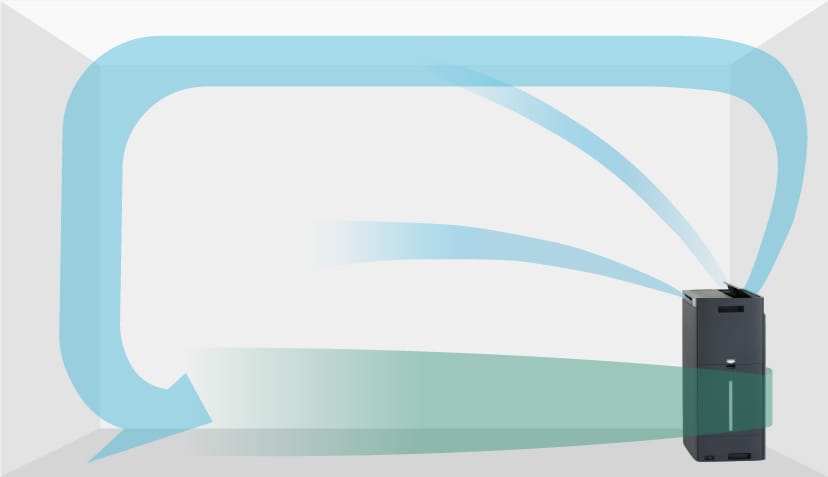 高濃度のイオンを広いお部屋の隅々にまで行き渡らせるため着目したのは、