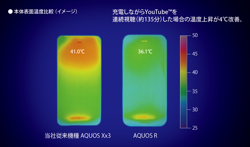 本体外郭近くに端末温度を監視する温度センサーを配置。より正確な温度監視が可能になりました。また内部構造にはアルミニウム合金を採用することで、素早く熱を拡散します。徹底した発熱対策により温度上昇を防ぐため、快適にお使いになれます。