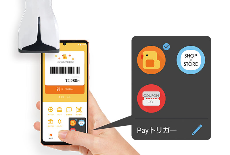 指紋センサーの長押しで電子決済アプリ起動*1。新たに、よく使うアプリをフォルダで一覧表示*2。支払いアプリやポイントカードをスムーズに切替え。